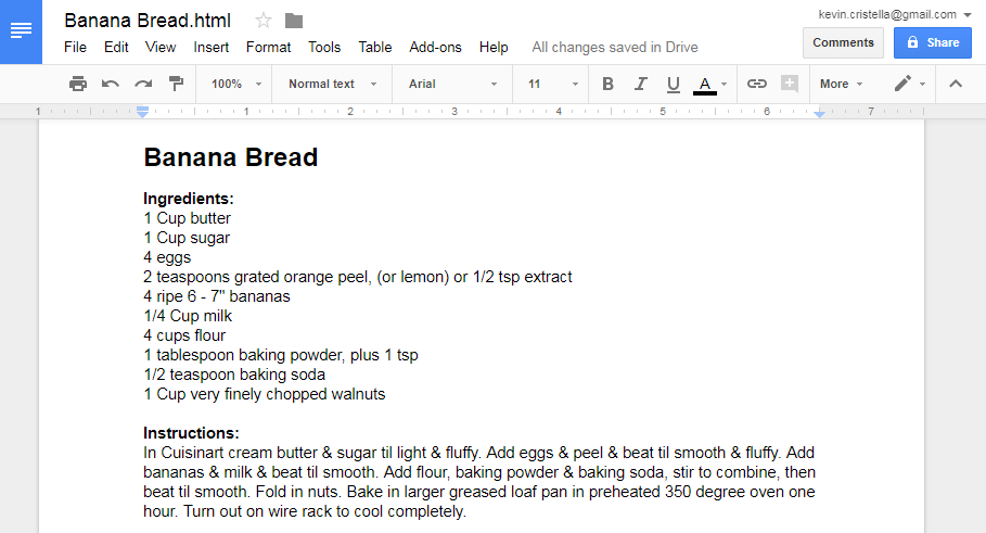 The Recipe Manager offers an export feature (described on page 52 of their User Manual) which allows for the bulk exporting of all recipes to a single text file. With that file I was easily able to write a Laravel Command with the help of Spatie’s string package to parse the exported text file and create one document for each recipe which could be uploaded in to Google Drive’s native doc format.